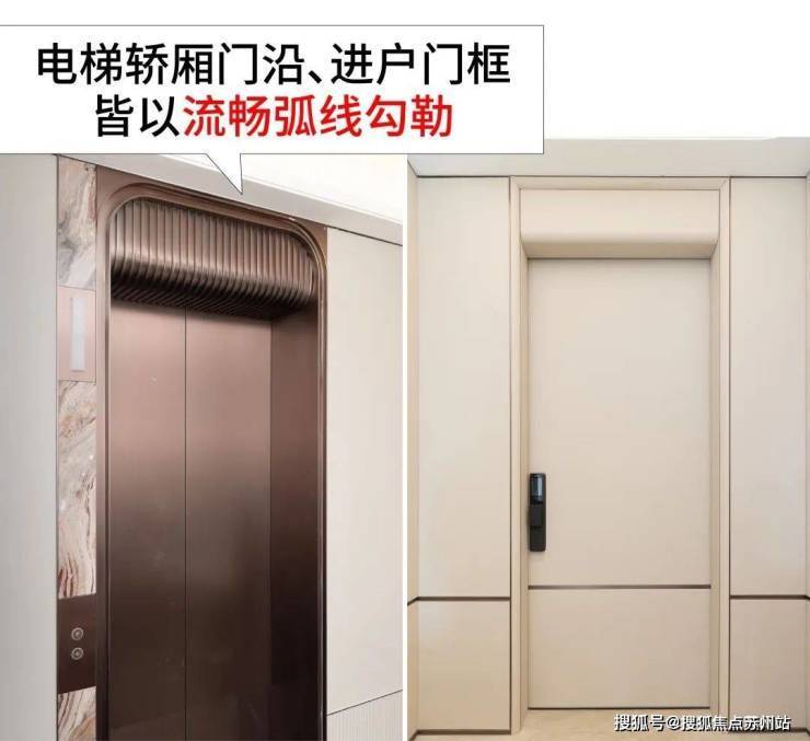 电梯轿厢门沿、进户门框皆以流畅弧线勾勒,为业主日常等电梯和归家增添几分优雅。