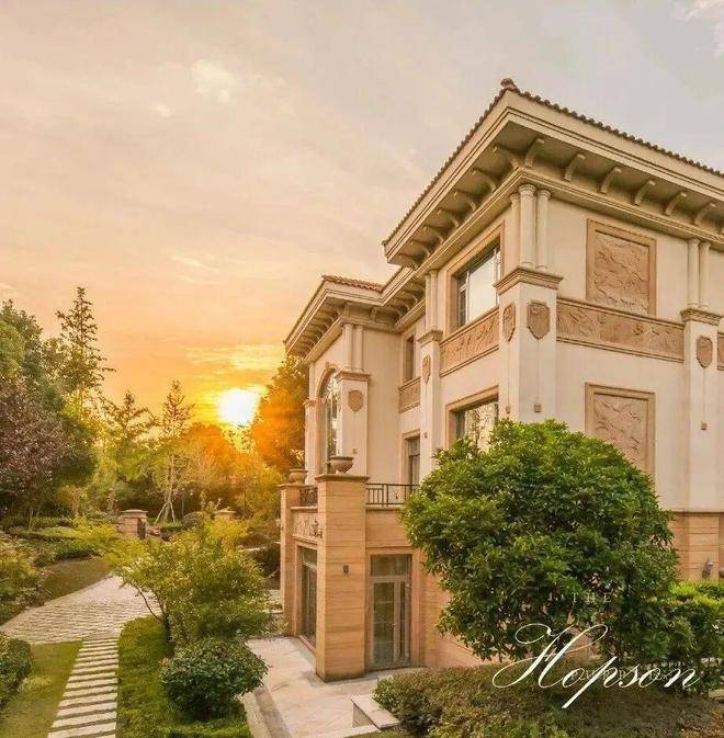 在社区规划与建筑打造上,佘山东紫园将“极致”二字贯彻始终。项目总占地广阔,却仅规划了99席独栋别墅,户均占地高达2.5-3亩,确保了每一位业主都能享有开阔的私家领地与极致的私密性。建筑外立面采用珍贵的天然澳洲砂岩,这种石材因不易变色、历久弥新而被广泛应用于卢浮宫、哈佛大学等世界著名建筑。每一栋别墅都经过手工精细雕刻,结合欧洲经典Art Deco风格,彰显出庄重、典雅的贵族气质。双开高门大户的设计,预留家族私徽的位置,传承世家门第的荣耀与精神。