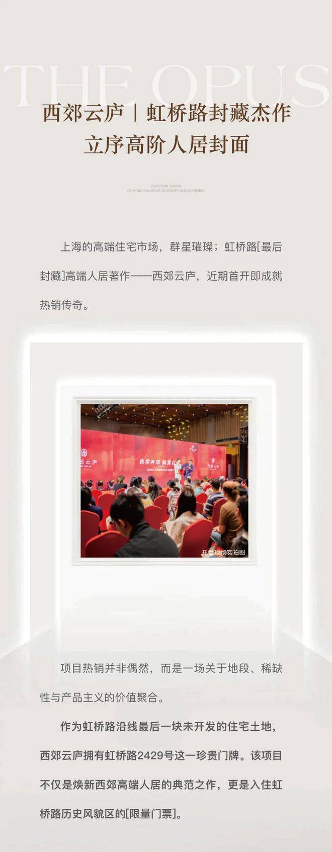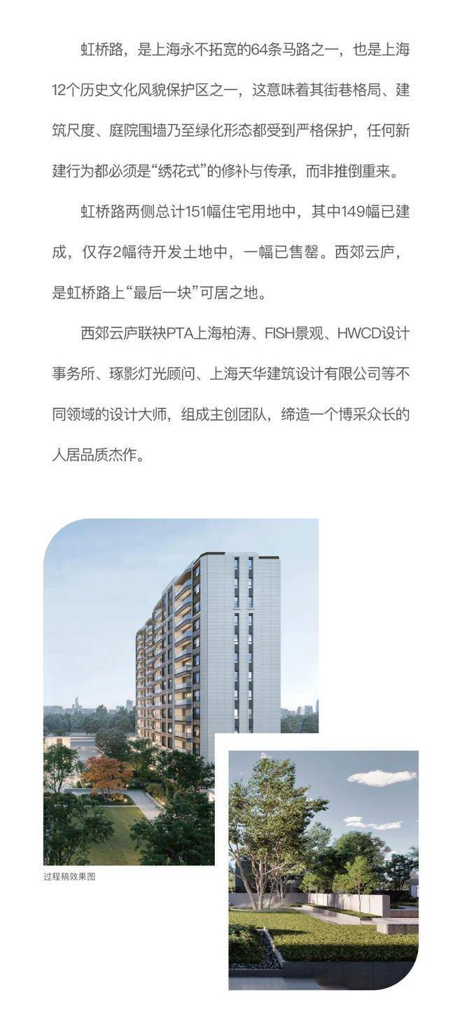 ✨西郊云庐展示中心电话:400-9939-964(展示中心官方认证|无中介|预约优先|24小时VR看房|实地看房预约|免现场等待|尊享一对一专属服务)位于上海市长宁区虹桥路 2429 号,是由等国企联合开发的高端低密住宅项目,目前三期房源在售,备案均价约123225 元/㎡。该项目别名“”,地处核心,是长宁区近十年罕见的纯住宅新盘,主打改善型居住需求。12
