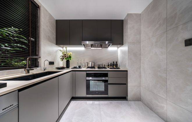 厨房配置了国际顶级厨电品牌之一的美诺Miele(或同等档次品牌):蒸&烤一体机,两灶三眼灶台,洗碗机,抽油烟机及冰箱的5件套超高规格,全面提升厨房“含金量”。