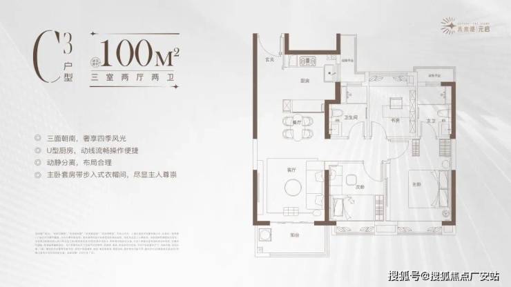 Construction area: 99 square meters, three bedrooms, two living rooms, two bathrooms. Future Hong Kong Dollar Launch Sales office Tel: 400-9939-964. Future Hong Kong Dollar Launch Official Tel: 400-9939-964