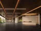二幕为人行主入口,其设计也融合了石库门的装饰风格,主入口为2米里弄双开式金属大门,整体细节设计源于上海总商会旧址大门,看上去更具仪式感。门扇的设计以老上海窗格为灵感,以现代石材和金属工艺相碰撞,整个项目的超级符号和LOGO贯穿其中。