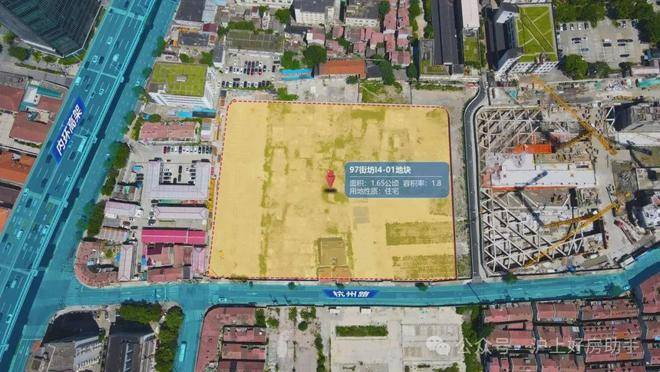 97街坊I4-01地块建设用地面积16482.71平方米,土地用途为普通商品房(二类住宅组团用地),容积率1.8,计容建筑面积29668.87平方米,位于黄浦江新质秀岸区段的“动韵桥芯”实施单元内,空间意向定位为“百年新秀带、活力桥头堡”。