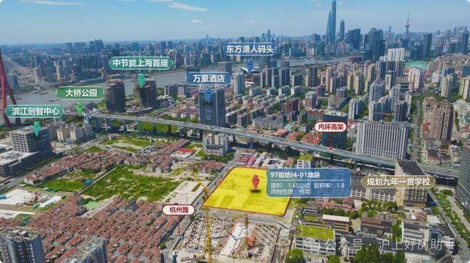 而就在月初,9月4日下午,杨浦区N090601单元I4-01地块(大桥街道97街坊)在激烈竞拍中成功出让。经过75轮竞价,最终由中铁置业和江苏润皋联合体以27.362亿元成功竞得,成交楼面地价92225元/平方米,溢价率28.1%,是七批次集中供地成交溢价率最高的地块,同时成交价格也刷新了板块记录。