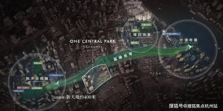 距离新天地直线距离约400米,作为蓝绿丝带规划上的关键节点,随着大新天地东进南拓战略逐步实施,通过水景、绿地和公共空间,串联新天地、豫园、外滩三大世界级商业版图。
