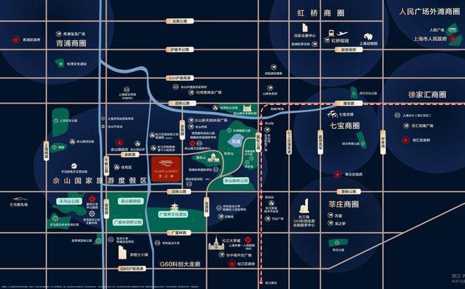 佘山·云间深谙此道,周边拥有极其优越的自然资源与配套。交通方面,临近地铁9号线佘山站,快速通达市区,同时周边有沈砖公路、嘉松南路等主干道,自驾出行便捷。周边环绕着佘山国家森林公园、欢乐谷、辰山植物园等休闲胜地,为家庭周末度假提供丰富选择。同时,项目紧邻佘山国际高尔夫俱乐部,为高净值人群提供社交与休闲的优质场所。