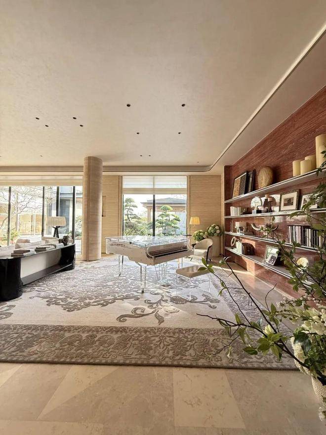 干挂进口石材+金属线条,搭配超大的全景落地窗,把佘山的绿意直接“框”成画。️