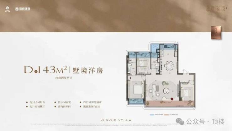 琨悦廷打造仅有289户的纯粹高端低密社区。南侧为115席建面约200㎡、220㎡、233㎡联排别墅;北侧为4栋总高11F,建面约143㎡洋房,仅此174席。