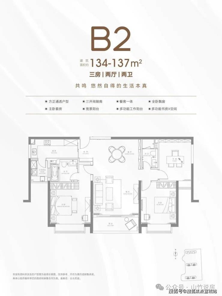 135㎡2+1房: