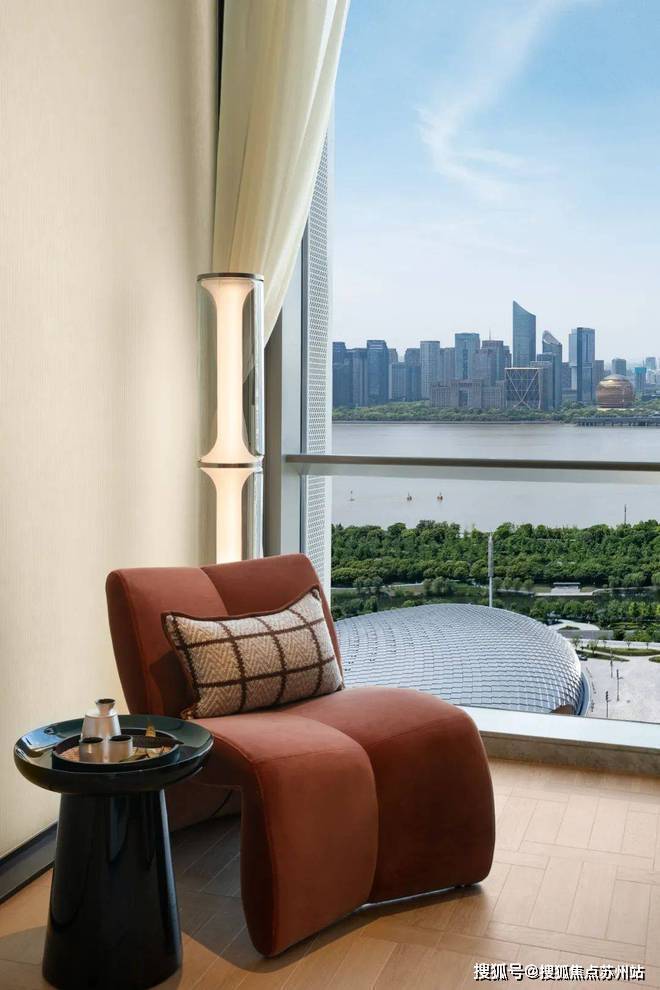 黄昏是它一天中最美的时刻,沐浴在夕阳里,江面映成橘红色的海洋,此时室内外的景观已经没有明确的界限,二者融为一体,这里是“杭州中轴”独有视野。什么叫稀缺资源占有,这就是全杭州不可复制的稀缺资源占有
