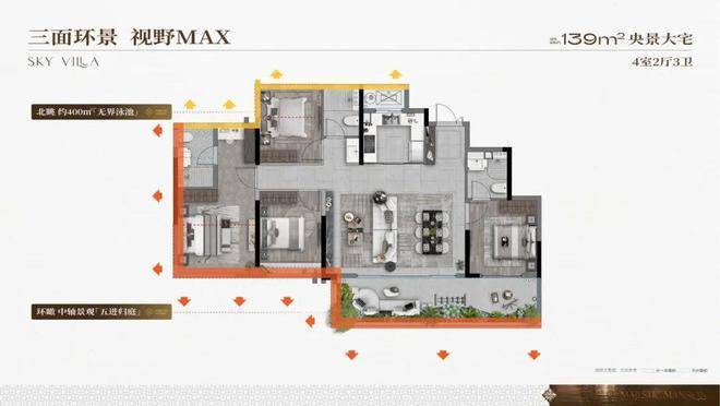 尤其23#楼正居C位,不仅可尽揽精华景观中轴“五进归庭”,还可北瞰约400㎡无界泳池的蔚蓝波光,向南坐拥阔绰楼间距带来的超大宅间花园,东侧更因临近叠墅区而得以享受更多阳光。无论你置身于书房、客厅还是卧房,风光总是无处不在。而这样“360°无死角”的C位楼座,仅此23#楼一栋。