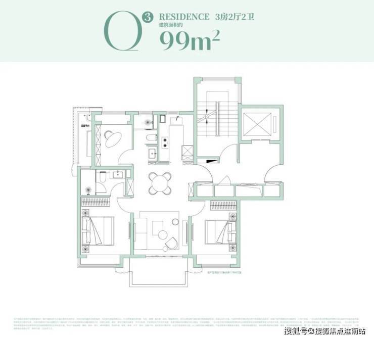 其中建面约99㎡3房在15#,双核心优势加持: