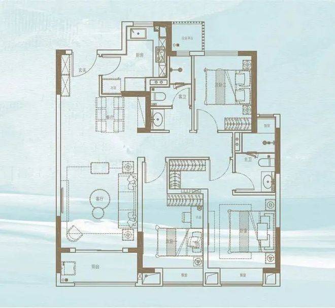 主力户型:95㎡-119㎡三房、142㎡四房,全明格局设计