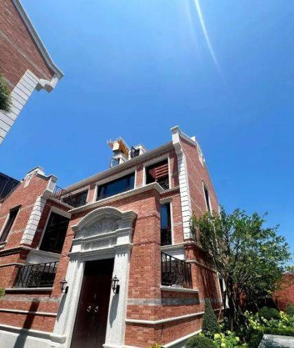 建筑立面定制手工砖、铁艺栏杆等细节,融合石库门风格与现代元素。