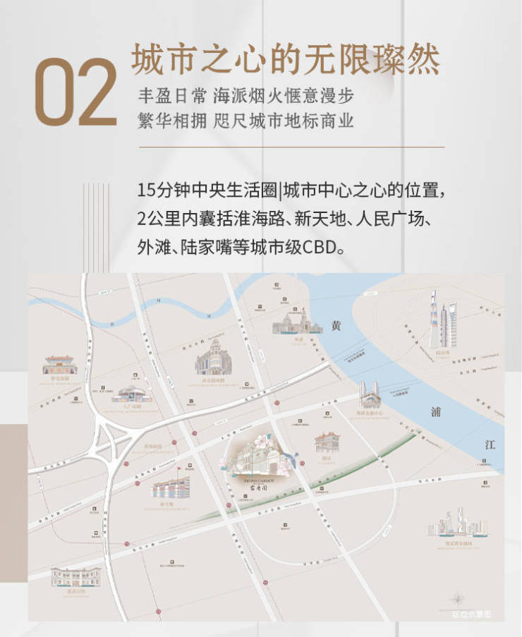 作为上海绝对市心,露香园直线距离人民广场、淮海路、新天地、外滩、豫园等上海市地标性区域均不超过1.5公里,距离陆家嘴直线约2公里。