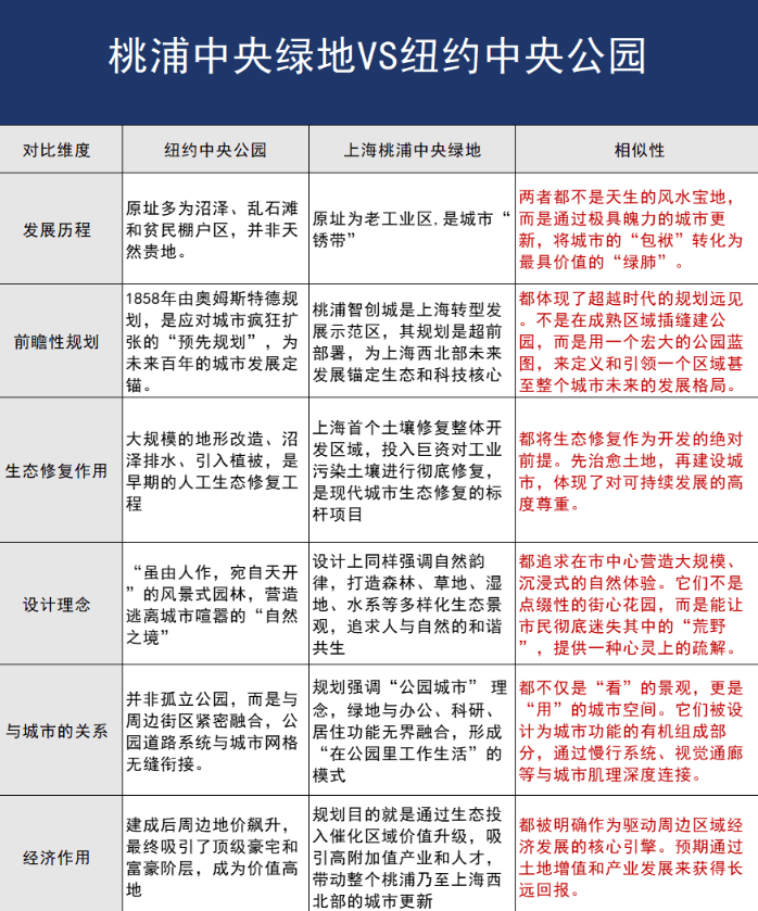 而桃浦中央绿地和中央公园有着相似的发展路径。