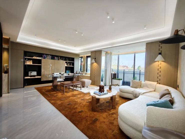 样板间里就是这种做法,能看到大横厅的尺度感非常舒适,完全不像一个118~125㎡左右的户型。