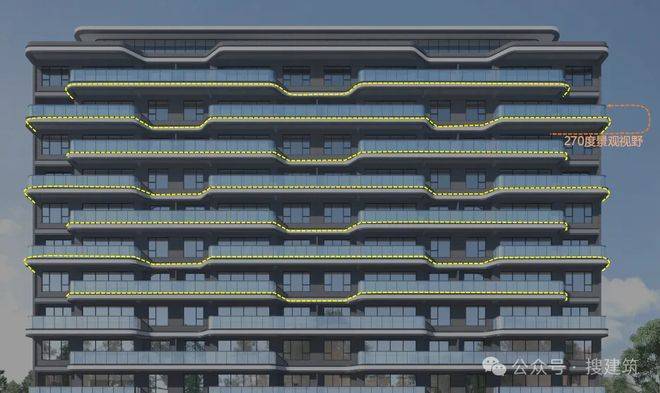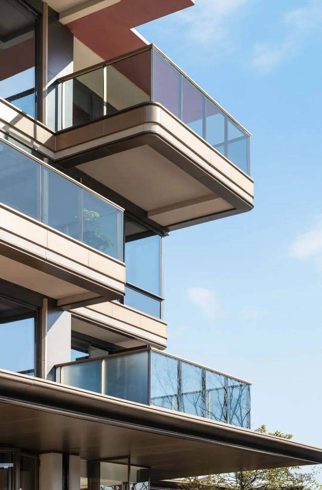 除了弧线之外,它还投入了更费成本和人工的圆弧转角,因为用了更显轻质通透的玻璃元素,和圆润处理后的转角。加上270°的景观视野,让建筑立面从各个角度看都能获得很好的感官效果。