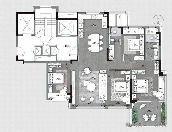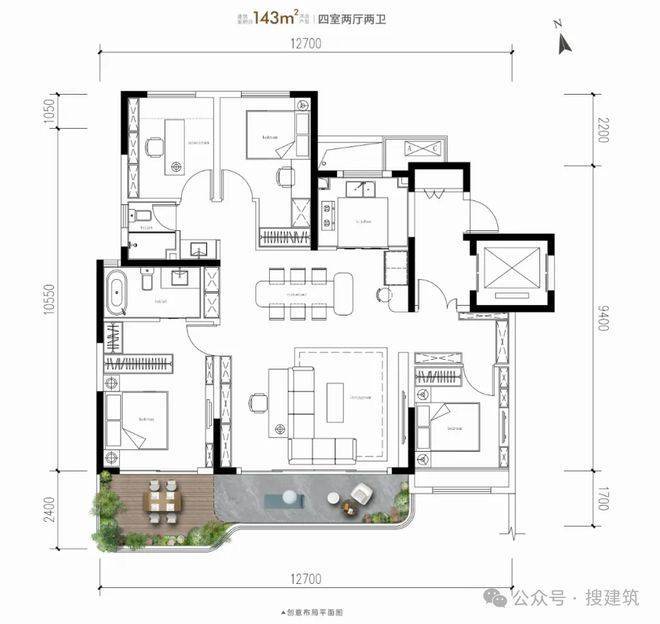 下面搜建筑与大家一起来看看市面上的第四代住宅143㎡户型是什么样的。