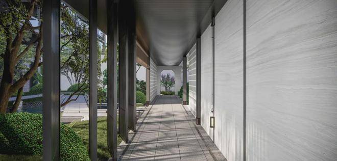 下叠庭院内,通透的大面积玻璃立面,结合檐下灰空间,形成开阔的空间感受;上叠超大面积露台打造“空中庭院”,使居住者于日常之中,体验到宋代取景自然、疏朗秀丽的园林之美。