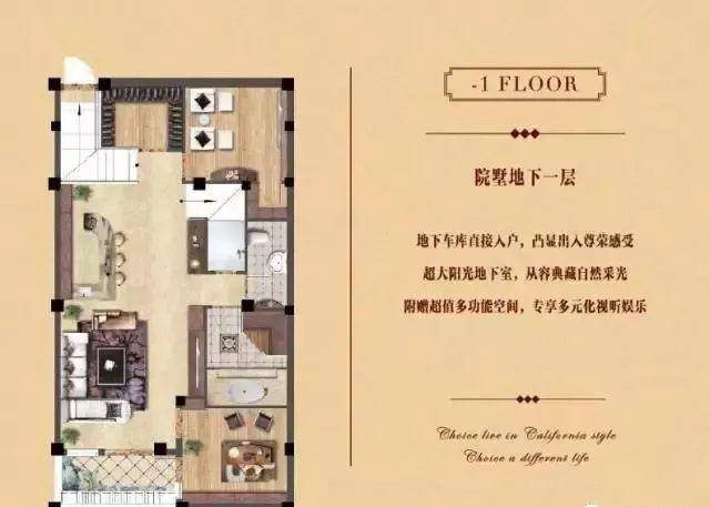 下叠户型是建筑面积160平米,享有130平米左右的双层阳光地下室,下叠户型由地下一层、地上两层总共3层空间组成。