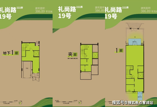 主力户型:建面约386-406㎡的沿街联排商业别墅,含地下77-95㎡空间,地上4层、地下2层(夹层+B1层),可灵活设计为商业、办公或居住空间。