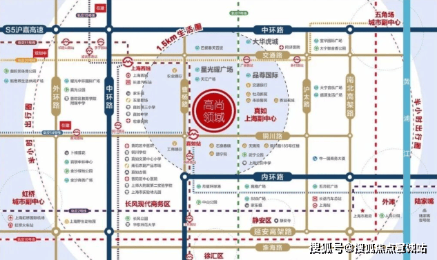项目地处上海内环旁,邻近11号线真如站(约100米),周边还有7/15号线及在建的20号线,五轨环绕。