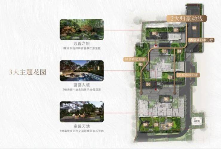 越秀·静安天玥通过酒店式归家+多元生活度假场景营造,将酒店功能、度假氛围和生活场景等多种体验揉进人居生活里,构建了林游及交互的体验归家动线,打造了度假的超然体验。会客水庭院、林下邻里会客厅、儿童IP乐园、太太花园、自然课堂等多元度假生活场景,拾趣绿意之中。