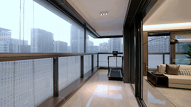 通透明净的大片落地窗、不经意间洒落在真皮沙发上的阳光,窗外波光粼粼的江面,共同组合成了一张巨幅的超写实风景画,令人屏息。