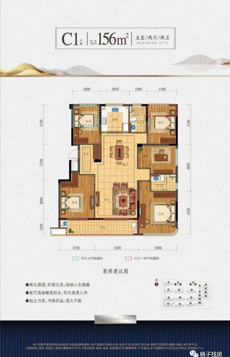 该户型改善风还是比较明显的,大阳台加大客厅,视野比较开阔。