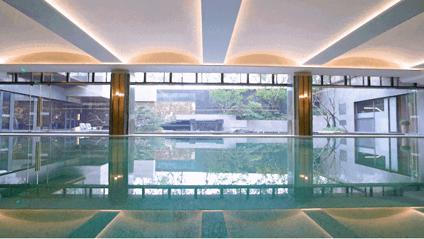更罕见的是, 项目打造了大体量的下沉式会所 。其配备了泳池、私宴厅等丰富的功能区,而且黑松与山石点缀其间,既显东方雅韵,又满足现代社交需求。