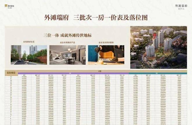 外滩瑞府二批次1号、3号楼少量续销,三批次收官之作,推出4号楼,建面约124-165㎡3-4房,总价约1554-2784万。(具体批次一房一价表及户型图见文末)