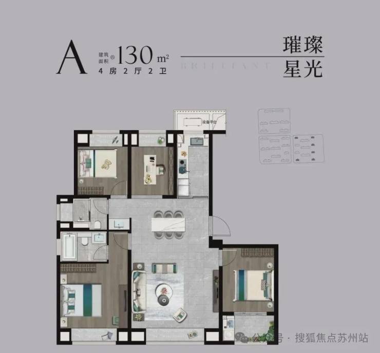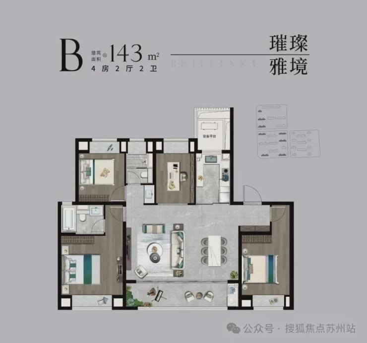 【宽奢四室】南北通透4房,家人独立房间,启幕品质人居