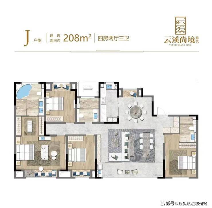 208平米4房2厅三卫户型----近20米超大面宽,菁英的生活排面