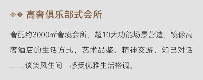 与此同时,项目还打造对标高奢酒店级会所,约2600m²规制,涵盖私宴厅、恒温泳池、健身中心、行政酒廊、红酒雪茄吧等。