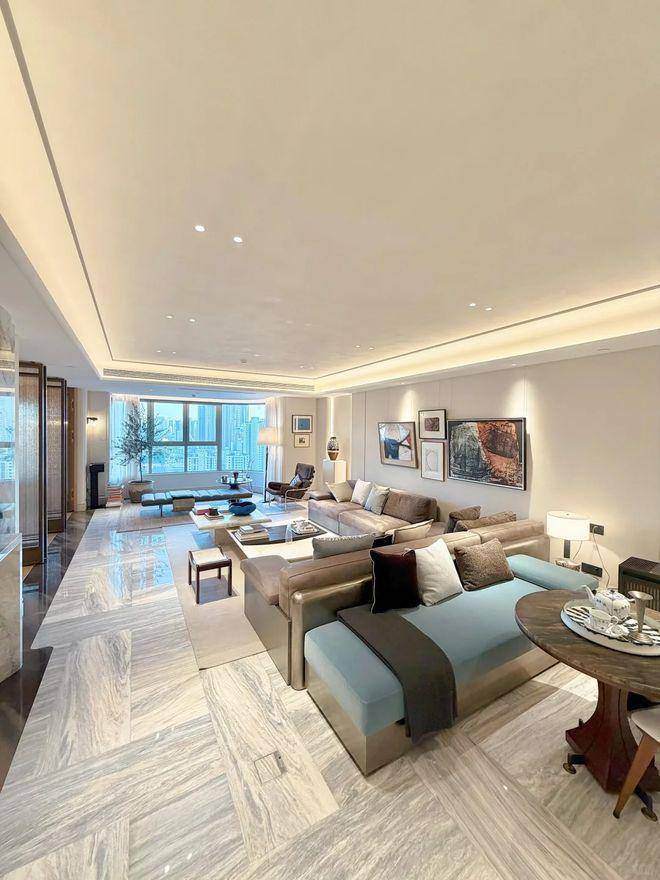 建面约 245-280㎡四房:全明通透格局,四开间朝南,最大约 16 米面宽,采光效果极佳;客厅连接约 10㎡南向阳台,可俯瞰中兴公园与社区园林景观;主卧 270 度转角大飘窗设计,视野开阔;四房两厅三卫布局,满足三代同堂或二孩家庭的居住需求,总价约 3200-3800 万。