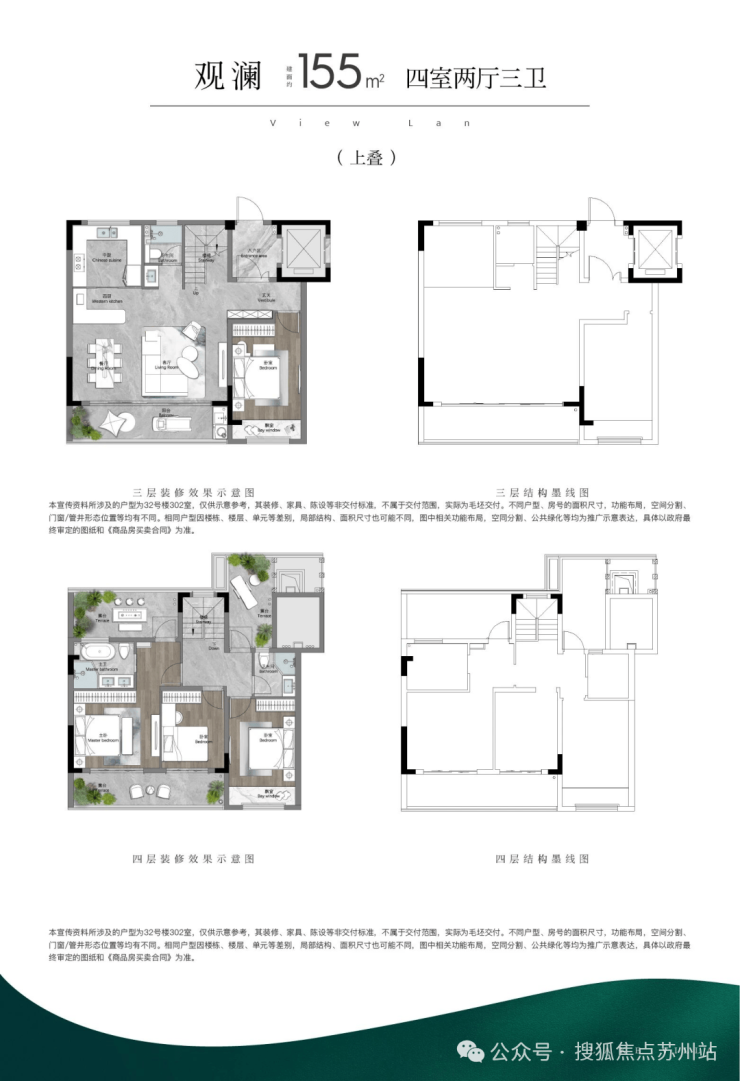 (2)叠墅:打造约155m²和约175 m²两个户型面积,更奢适的空间,蕴藏多种美好