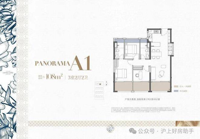 约108㎡户型:三开间朝南阳台,上海中环绝版配置!彻底粉碎百平三房“牺牲舒适换功能”的魔咒:南向次卧原本稍显局促的空间,因南向阳台的拓展实现质的飞跃,轻松容纳1.8米大床及床头柜,舒适度倍增。