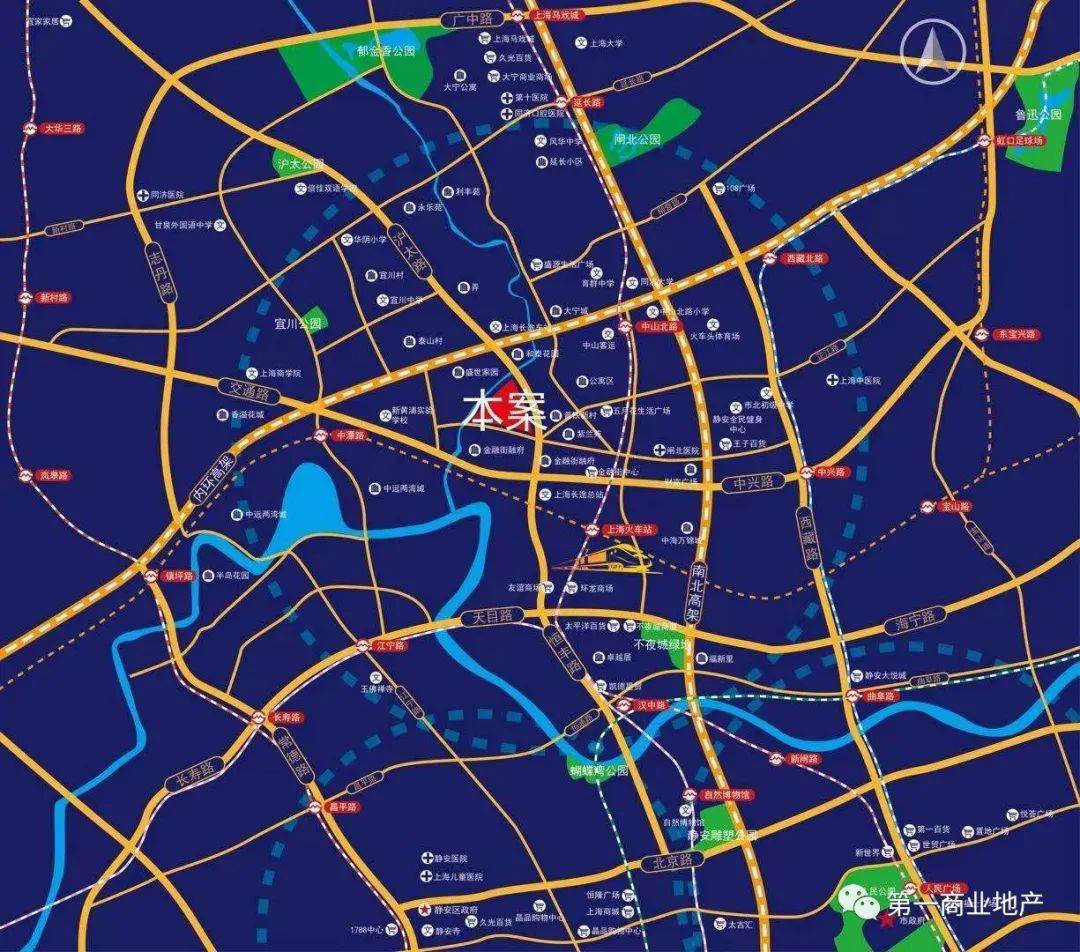 三轨环绕,1、3、4号线900米可到上海火车站和中山北路地铁站(数据来源高德地图),构成了不夜城板块主要的城市多维交通,畅达上海各处。