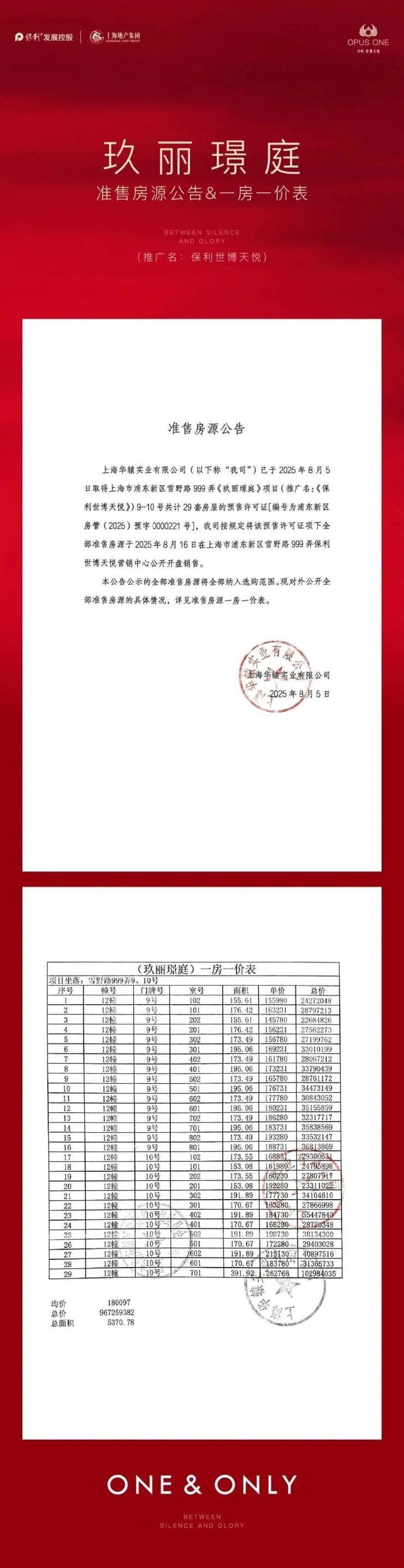 据悉,今年的新房房源单价天花板很快要被保利世博天悦自己打破!6月5日开启认购的3#楼王中,房源单价将再度刷新今年上海顶豪房源单价,达到302666元/㎡;“隐藏款”建面约500㎡天幕平层,总价一亿起,真正的“一亿一宅”!