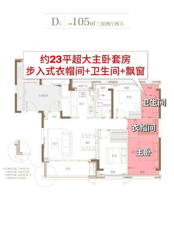 ④约23平超大主卧套房,步入式衣帽间+卫生间+飘窗
