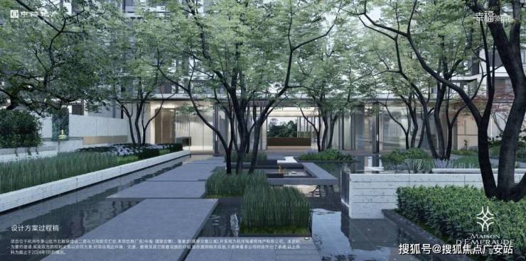 切换到小区主入口,以院落、水景、长廊形成了系统化场景串联,以泗水归堂为节点,把喧嚣城市代入静谧园区,形成酒店般的归家感受。