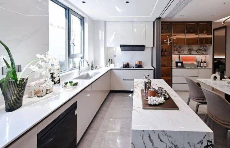 LDK一体化设计,厨房、餐厅、客厅既是完整的独立空间,又通过动线梳理融合贯通,将家庭核心功能区间有效串联起来,满足N重家庭场景需求。