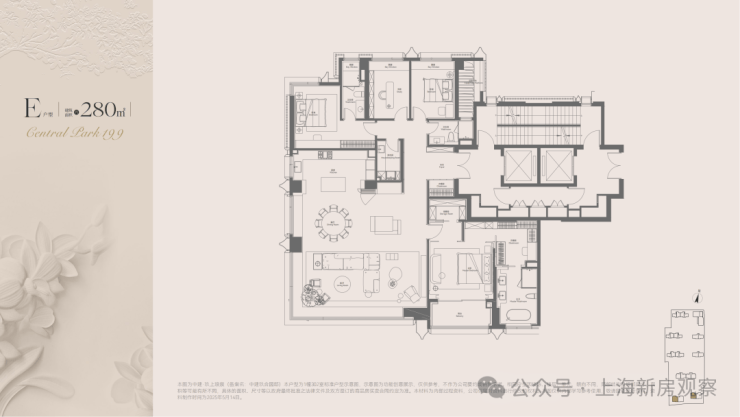 项目最小面积就是127户型起跳。不过从建筑外轮廓来看,项目小户型是2T4且有连廊,合规要提醒一下。从南向北面积段由大到小,分别是:281/210/190/162/127户型,依次排开,具体套数可以看小编整理的户型配比图。