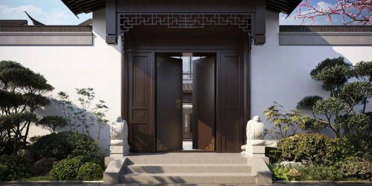 门前一对抱鼓石,推开铜环双开门就是家。滴水檐瓦,全依古法,还原每一个繁复的构件。