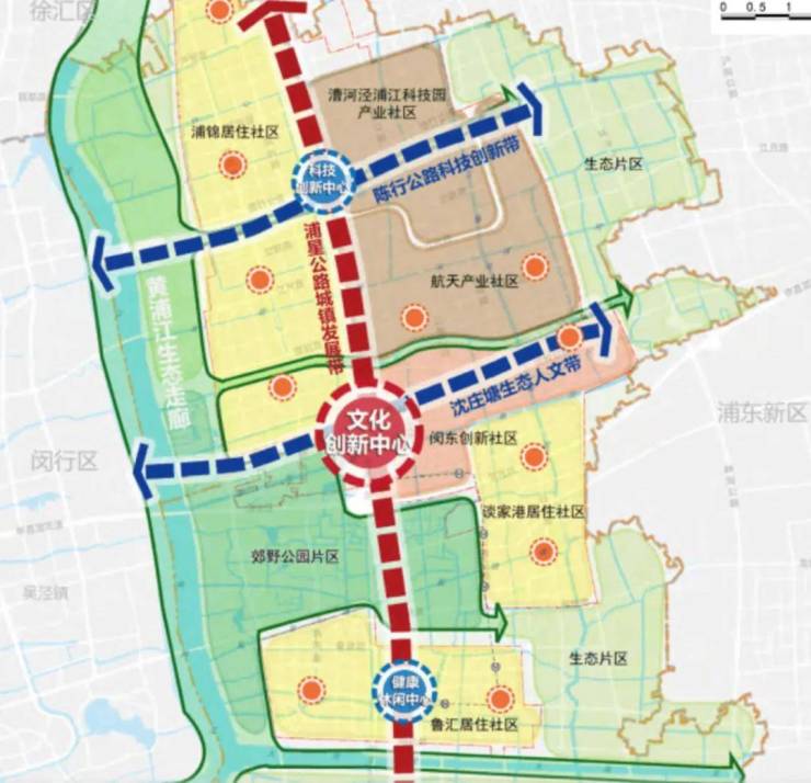 在2035规划中将浦江镇定义为闵行中心城区,打造 “一廊三带三心”空间布局,依托得天独厚的生态资源及完善配套定义为“生态宜居板块”以及生态创新研发服务中心。