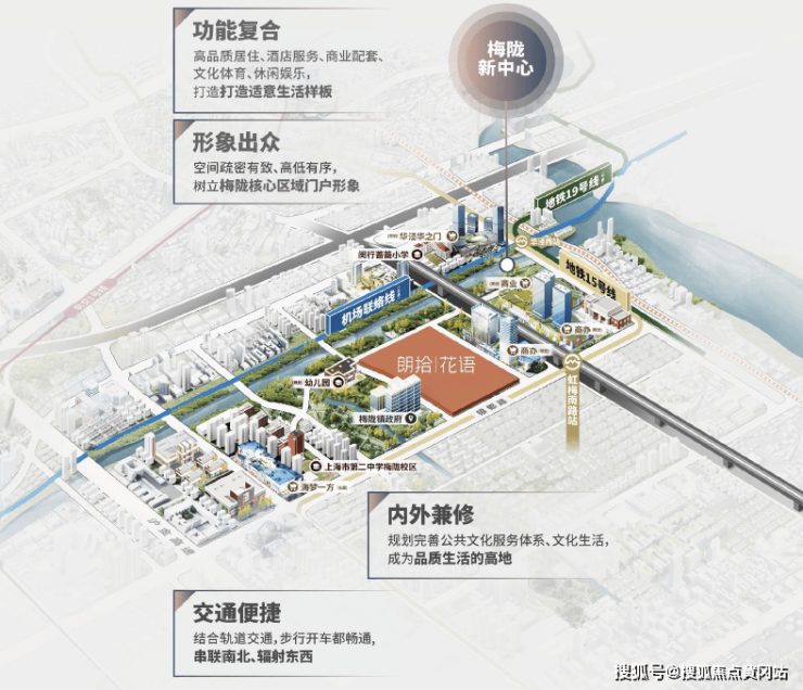 据悉梅陇新中心将以TOD理念打造功能无缝衔接的综合枢纽,沿景洪路两侧打造约120米城市高地,沿春申塘打造滨水地标,优化基础教育和公共服务布局。