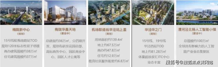 机场联络线华泾站上盖:紧挨着华之门,用地面积约139.4万㎡,地上总开发规模约67.5万㎡,其中商办面积达到了约47.8万㎡,未来也将成为热门商业地标。