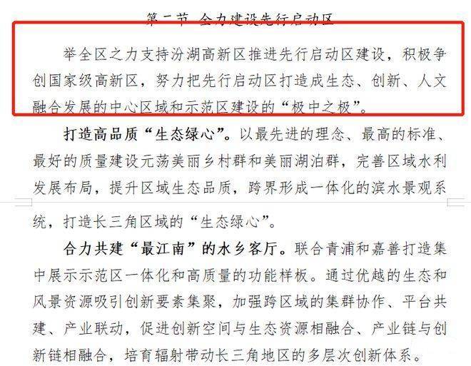 在最新的“十四五”规划中,吴江除了讲述各片区未来要如何发展外,竟然另开辟了一个章节,重点给长三角一体化示范区,并多次表示要举全区之力支持汾湖高新区推进先行启动区建设,积极争创国家级高新区!