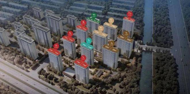 :占地约4万㎡,容积率1.7,建筑密度19.8%,由11栋13-17层小高层组成,户型为165-225㎡四房三卫设计